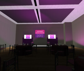 In 2012, we (then called Hao2.eu) won the CBI Nominet Trust Most Innovative Internet Business 2012 Award. The ceremony was attended in person by some of our staff, and virtually by others. The virtual building was a replica of the Saatchi Gallery, which we made an exterior of, in addition to an interior replica of the awards hall.